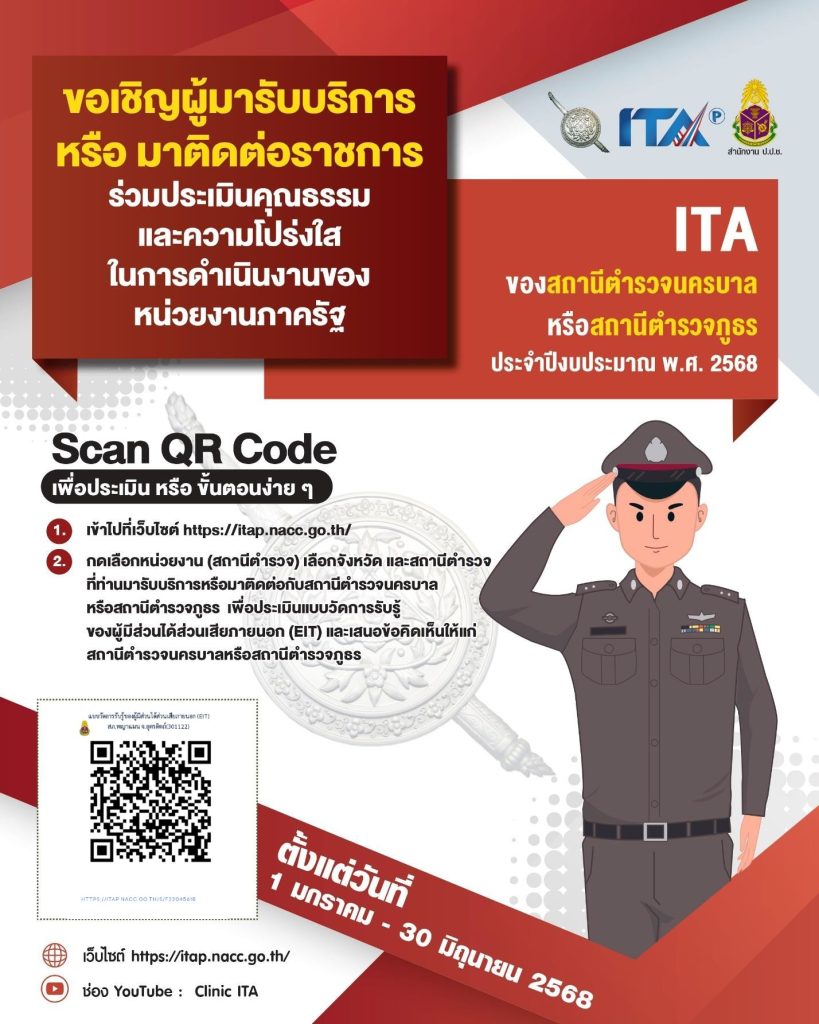 การประเมิณคุณธรรมและความโปร่งใสในการดำเนินงานของหน่วยงานรัฐ(ITA)ของสถานีตำรรวจภูธรพญาแมน ประจำปี 2568 OIT