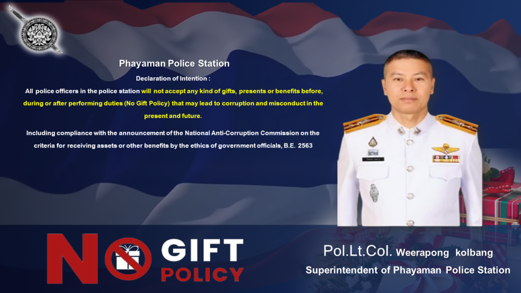 ประกาศไม่รับของขวัญและของกำนัลทุกชนิด (NO GIFT POLICY)