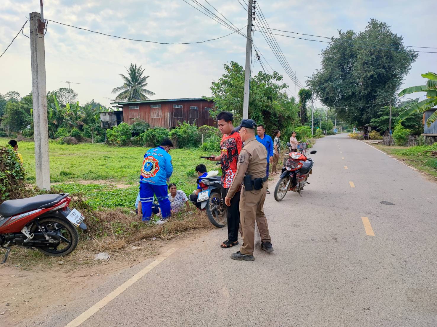 สภ.พญาแมน วันนี้ 17 ธ.ค. 2568สายตรวจรถยนต์พญาแมน ออกตรวจสอบที่เกิดเหตุรถชรถจักรยนต์ชนกัน แยกในหม่บ้า