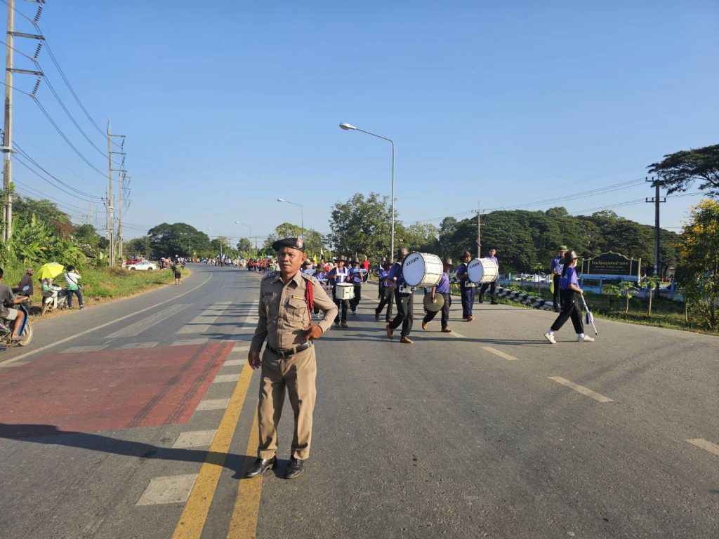 จราจร,สายตรวจรถยนต์,อาสาจราจรและกู้ชีพ อบต.พญาแมน ดูแลการจราจร ขบวนการแข่งขันกีฬานักเรียน ระดับชั้นประถมศึกษา (8โรงเรียน) เพื่อป้องกันการเกิดอุบัติเหตุทางถนนกับนักเรียน ผู้ปกครองและผู้ใช้รถใช้ถนน