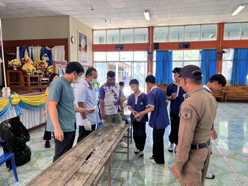 ร่วมกับปลัดอำเภอพิชัย, รพ.สต.พญาแมน, ศูนย์คัดกรองยาเสพติด อบต.พญาแมนและคณะครูโรงเรียนชุมชนบ้านดง ร่วมตรวจสารเสพติดเด็กนักเรียนโรงเรียนชุมชนบ้านดง ต.พญาแมน อ.พิชัย จ.อุตรดิตถ์ เนื่องในกิจกรรมแห่งการรณรงค์ค้นหาผู้เสพและผู้ติดยาเสพติดเข้าสู่กระบวนการบำบัด ประจำปีงบประมาณ พ.ศ.2568 ครั้งที่ 2