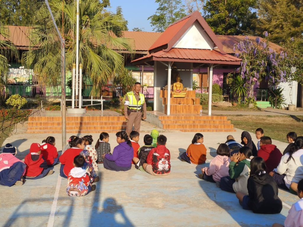 ดำเนินโครงการ ครู 5 นาที หน้าเสาธง ให้ความรู้เกี่ยวกับวินัยจราจร กฎหมายจราจร และอุบัติเหตุจราจร แก่ ครูและนักเรียนโรงเรียนวัดดอกไม้