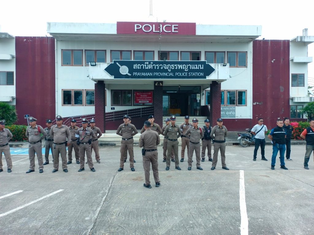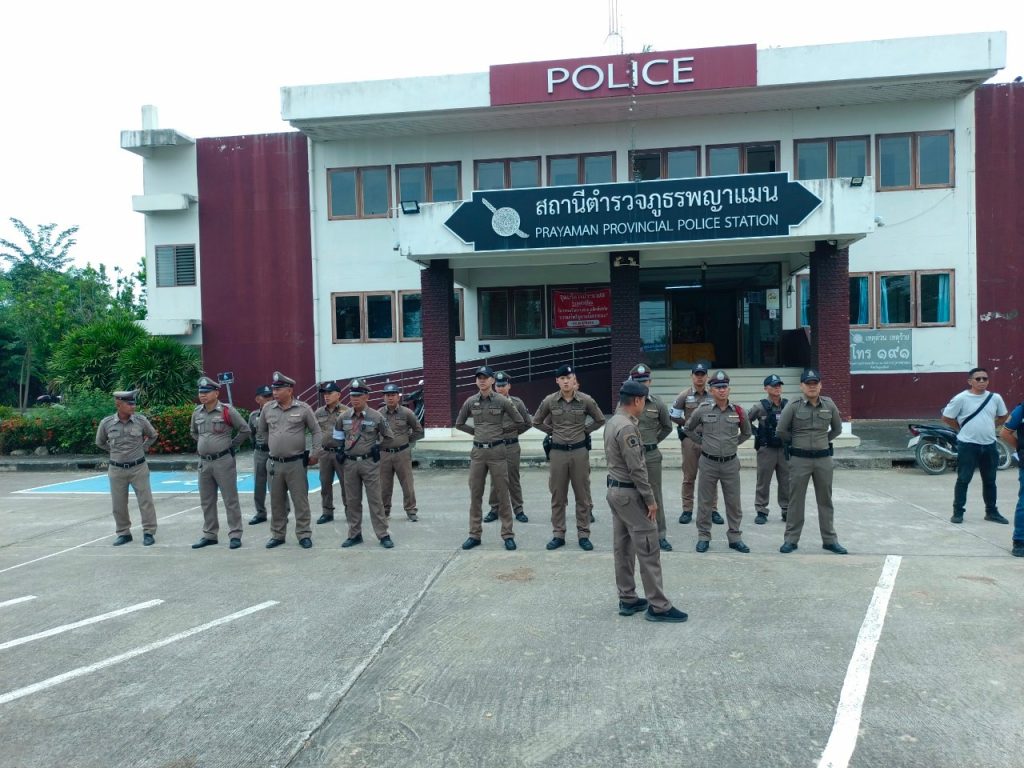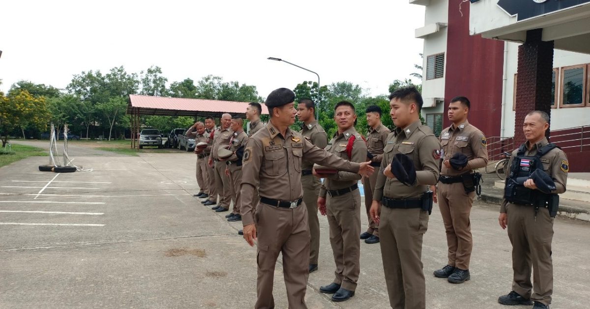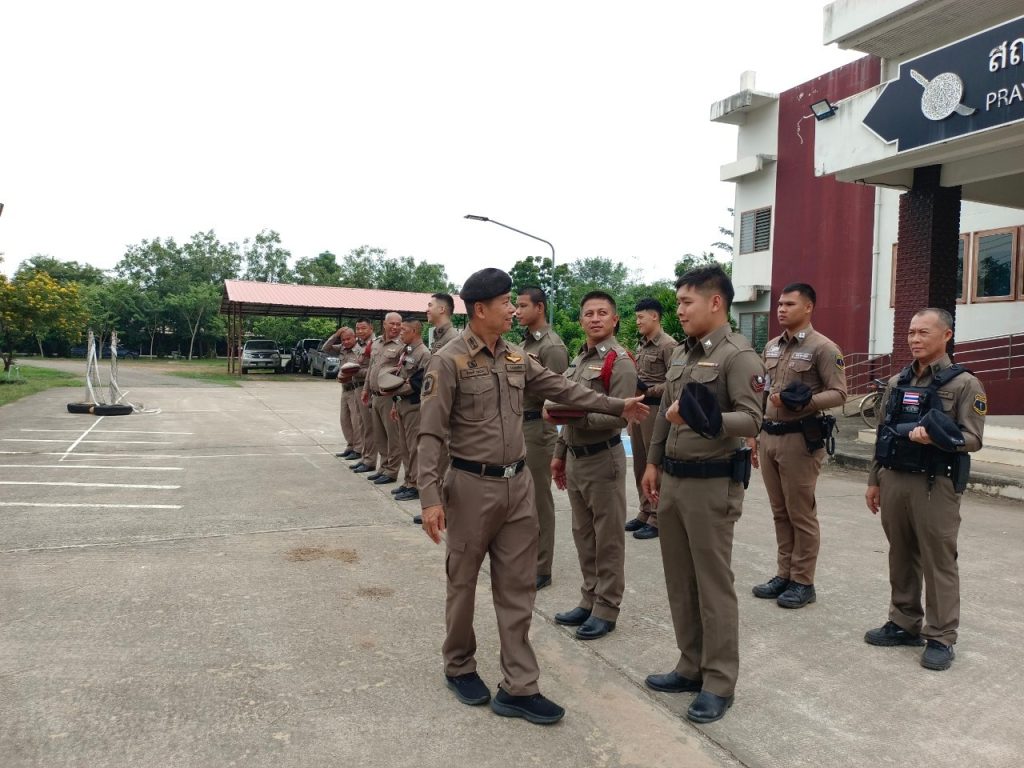 วันที่ 6 ต.ค. 2567 พ.ต.ท.วีรพงศ์ กลบาง สว.สภ.พญาแมน นำกำลังข้าราชการตำรวจสภ.พญาแมนเข้าแถวเคารพธงชาติ ตรวจเครื่องแบบ เครื่องแต่งกายเพื่อให้พร้อมกับการปฎิบัติหน้าที่ กำชับให้เคร่งครัดต่อระเบียบวินัยและปฏิบัติหน้าที่อย่างรอบครอบและปลอดภัย